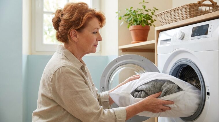 Un pull doux, une lingerie fine, un t-shirt “fragile” : sur l’étiquette, tout semble simple… jusqu’au moment où la machine rend son verdict. Malgré des précautions dignes d’un cours de couture, certaines pièces ressortent boulochées, déformées ou, pire, avec une maille tirée qui ruine tout. Le réflexe le plus courant consiste à revenir au lavage à la main, long et contraignant, surtout quand la pile de linge s’accumule. Pourtant, le problème ne vient pas toujours de la lessive ni d’un prétendu “mauvais programme”. Le vrai ennemi se cache dans le tambour, et la solution peut être étonnamment simple, déjà présente dans un placard. Un objet tout bête, détourné avec malice, change la donne sans dépenser un centime.